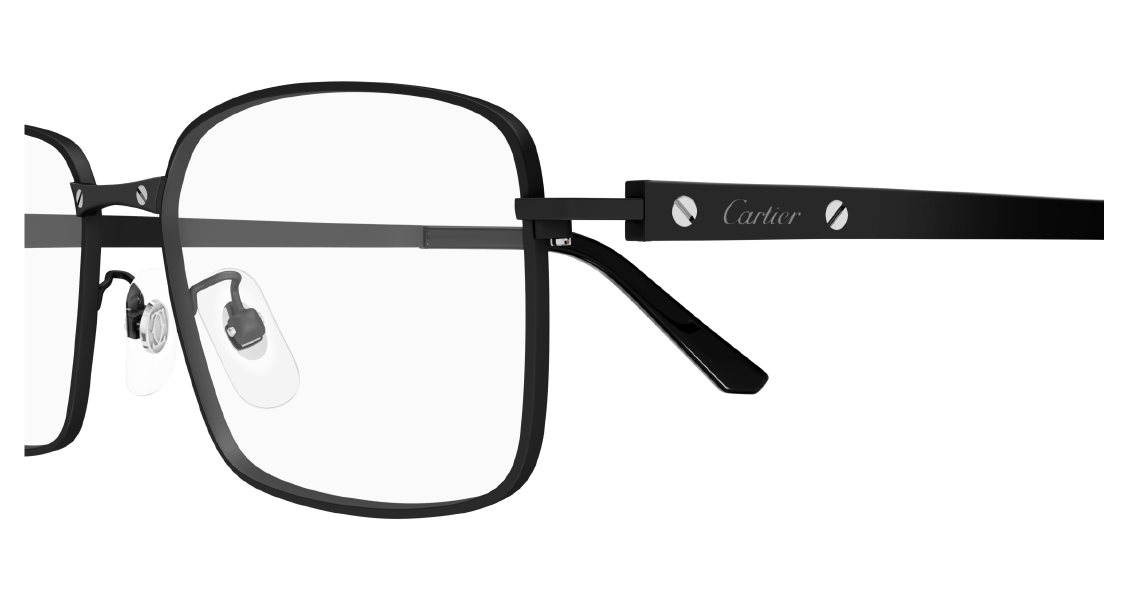 Оправа выполнена в изысканном тёмном оттенке, который подчёркивает чистоту линий и аккуратную геометрию формы. Металлические детали, оформленные в фирменном стиле Cartier, добавляют образу утончённого блеска и демонстрируют внимание бренда к мельчайшим нюансам.