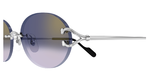 Очки выполнены в овальной форме с безободковой (rimless) конструкцией, что создаёт эффект лёгкости и визуальной прозрачности. Металлические дужки украшены фирменным мотивом “Décor C” и каннелюрами Godron — знаковыми элементами бренда, придающими изделию характерную глубину и текстуру.