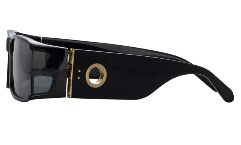 Изящный прямоугольный силуэт солнцезащитных очков Mya с острыми углами создает уникальную форму и добавляет интриги. Оправа изготовлена из переработанного черного ацетата и имеет прямоугольную линзу, которая доходит до боковой панели. Серые нейлоновые линзы обеспечивают антибликовое покрытие и 100% защиту от ультрафиолета. Ламинированные кончики дужек из ацетата обеспечивают комфорт владельцу при носке. На заушнике имеется фирменная проушина LINDA FARROW с титановым покрытием.