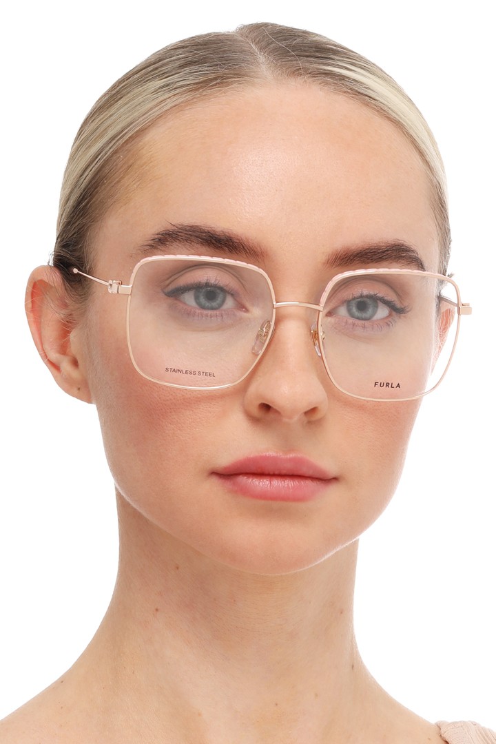 Женская оправа квадратной формы - оригинальная модель итальянского бренда Furla, которая подчеркнет ваш стиль. Изготовлена из нержавеющей стали, что придает ей высокую прочность, износоустойчивость и пластичность. Модель представлена в золотом цвете с пудровыми заушниками и верхней окантовкой рамки. Тонкие дужки почти незаметны на лице. Оправа станет идеальным выбором для обладателей почти любой формы лица.